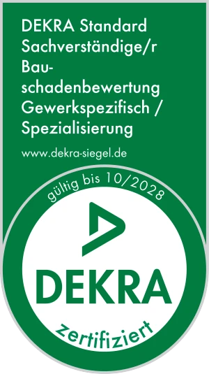 DEKRA-zertifizierte sachverständige Leitung mit über 20 Jahren Erfahrung in der Baubranche.